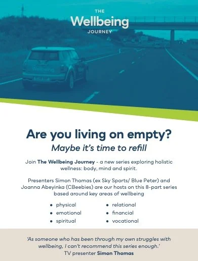 The Wellbeing Journey is a new series to help churches and communities address key challenges in these times. Local churches are in a unique place to lead communities on this holistic journey to improved physical, mental and spiritual wellbeing.